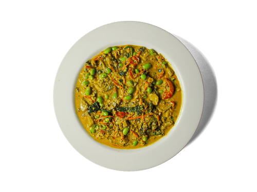 $0.00A rich Thai red curry coconut broth loaded with organic hodo tofu hearty mushrooms, edamame, and fresh veggies—finished with fluffy quinoa, herbs, and a touch of heat from fresh chili. Packed with anti-inflammatory spices, plant protein, and omega-rich chia for vibrant, sustained wellness.Spice LevelHotIngredientsOrganic Hodo Tofu, Curry (coconut milk, vegetable stock, Organic onion, Thai Red Curry paste (garlic, dried red chili, lemongrass, shallot, salt, galangal, kaffir lime peel, pepper), ginger, gluten-free tamari, lime juice, Organic garlic, EVO/AVO blend, maple syrup, turmeric), Chili slices, Organic lime wedges, Edamame, Organic Mushrooms Shiitake, Organic Mushrooms Crimini, Organic Red Bell Pepper, Organic Zucchini, Organic Carrots, Organic Bok choy, Organic Spinach, rainbow quinoaNutrition InfoCalories654cal33%