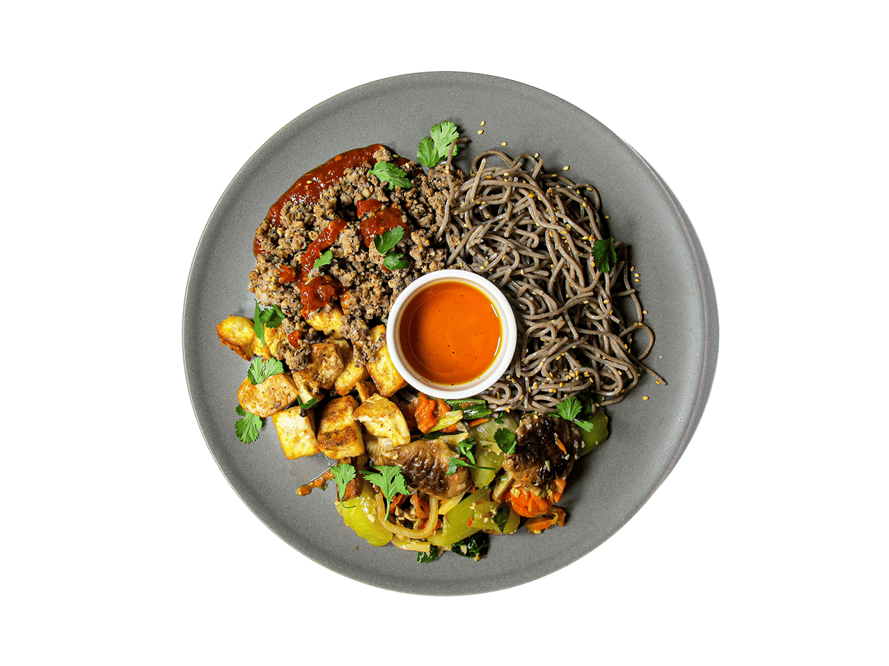 A bold and satisfying dish featuring blackened chicken thigh, wok-tossed brown rice with vibrant vegetables, and a fiery kick from house-made chili crisp and fried rice sauce. Topped with creamy Japanese-style soft scrambled eggs and sweet sesame snap peas, this high-protein, nutrient-packed bowl fuels energy and supports recovery.