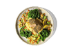 Fava Succotash (Organic onion, Organic carrot, Organic parsnips, Organic celery root, Organic corn, Organic fava beans, Organic red bell pepper, Avocado/EVO blend, garlic, apple cider vinegar, lemon juice, flaxseed meal, cumin, grass-fed butter, Organic parsley, kosher salt, black pepper), Organic Broccoli Rabe or Organic Rapini (Organic broccoli rabe or rapini, Avocado/EVO blend, kosher salt, black pepper), Wild King Salmon (wild king salmon, Avocado/EVOO blend, za’atar spice, lemon zest, garlic, kosher salt, black pepper), Organic Lemon. Allergens: Fish, Soy, Dairy
