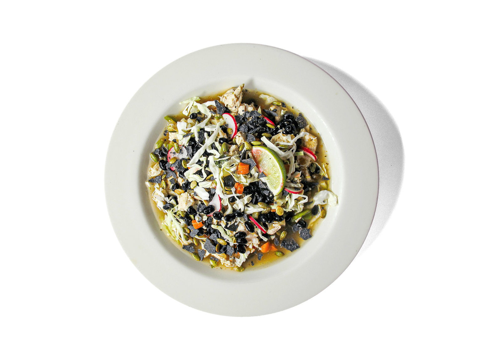 Organic black beans, free range organic chicken breast, Vegetable blend (organic onion, organic carrot, organic celery, hatch green chilis, organic zucchini, avocado/EVO blend, organic cabbage, garlic, flax seed meal, cumin, paprika, oregano, cilantro, salt, kosher, pepper, black), Organic hominy (corn, water, salt), Posole broth (organic chicken broth, avocado/EVOO blend, garlic, fresh minced, cumin, paprika, oregano, salt, kosher, pepper, black), Organic cabbage, Organic radish, Organic onion, diced, Organic oregano, Organic pumpkin seeds, Organic masa tortilla chips (organic corn, beef tallow, salt, Clean Chili crisp (Avocado Oil, Sichuan Chili Flakes, Korean Chili Powder, Himalayan Pink Salt, Organic Lion’s Mane, Organic Zinc Salt, Organic MCT Oil, Oil-Infused, Habanero, Sichuan Peppercorn, Ginger, Shallots, Garlic, Star Anise, Cinnamon Bark, Black Cardamom). Allergens: Spicy, Beef